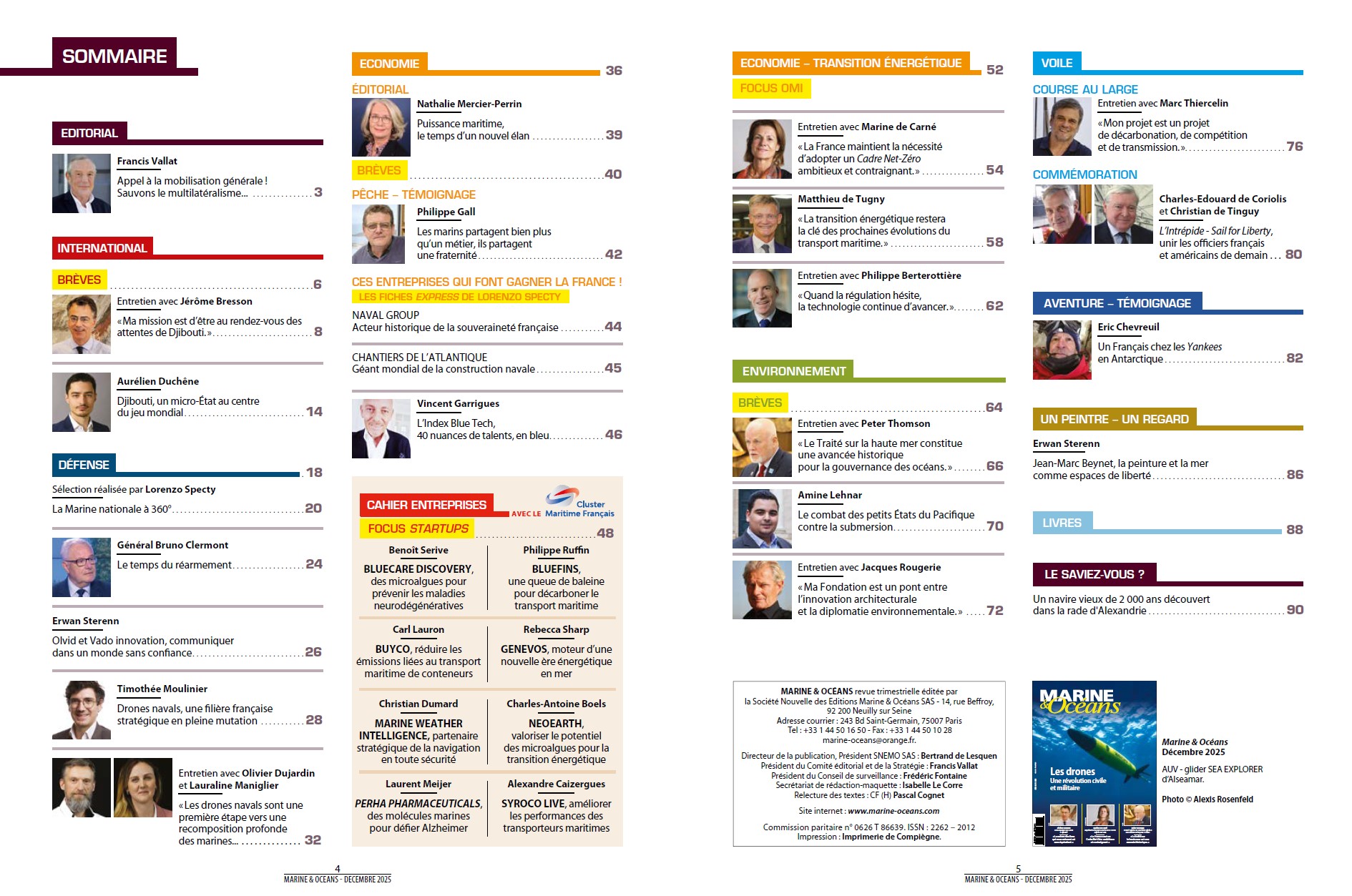 La revue trimestrielle MARINE & OCÉANS est éditée par la "Société Nouvelle des Éditions Marine et Océans". Elle a pour objectif de sensibiliser le grand public aux principaux enjeux géopolitiques, économiques et environnementaux des mers et des océans. Informer et expliquer sont les maîtres mots des contenus proposés destinés à favoriser la compréhension d’un milieu fragile. Même si plus de 90% des échanges se font par voies maritimes, les mers et les océans ne sont pas dédiés qu'aux échanges. Les ressources qu'ils recèlent sont à l'origine de nouvelles ambitions et, peut-être demain, de nouvelles confrontations.